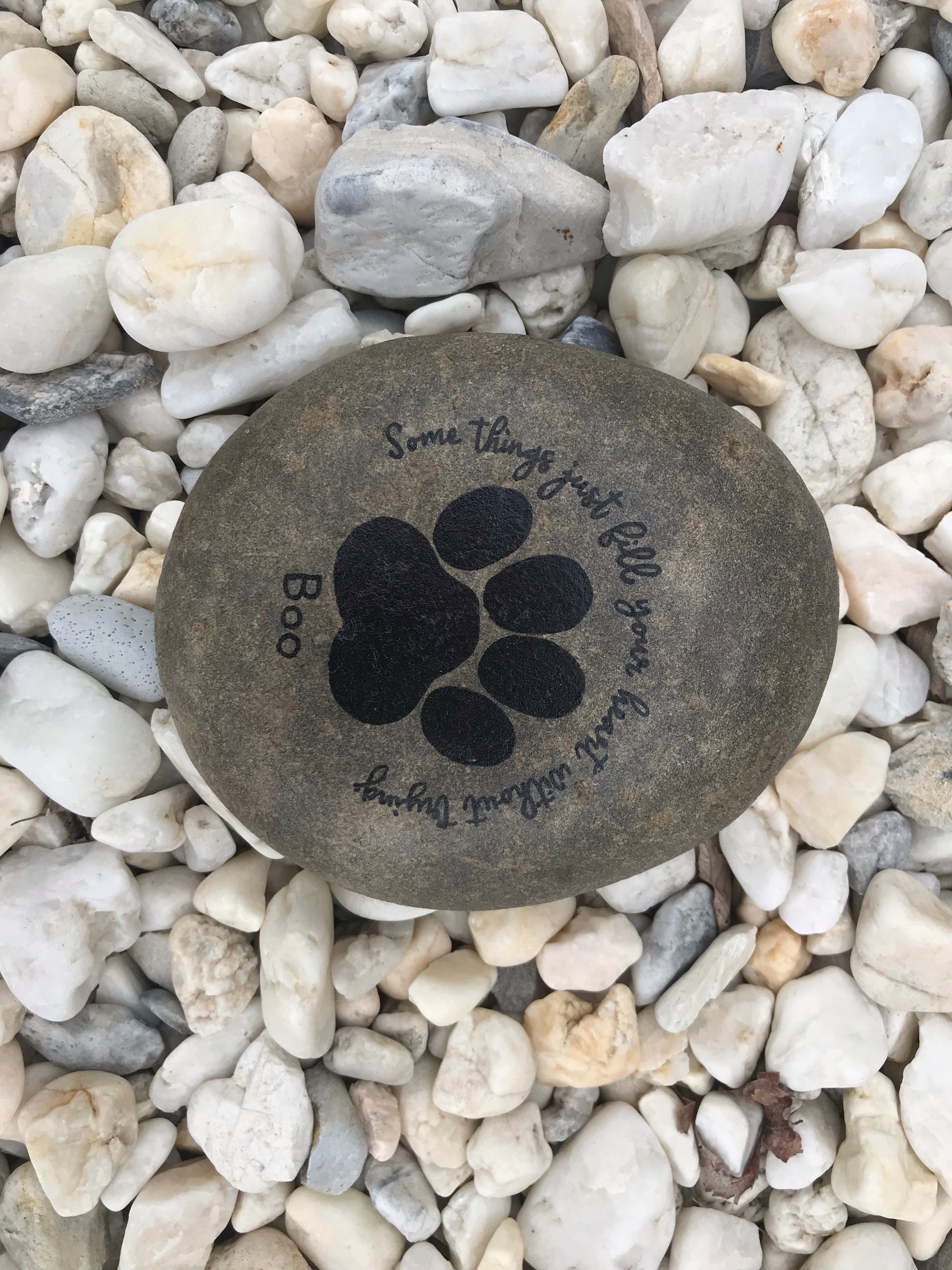 Our medium stones are roughly 5-6" wide, featuring our standard poem and design about our beloved pets with an additional paw print detail.