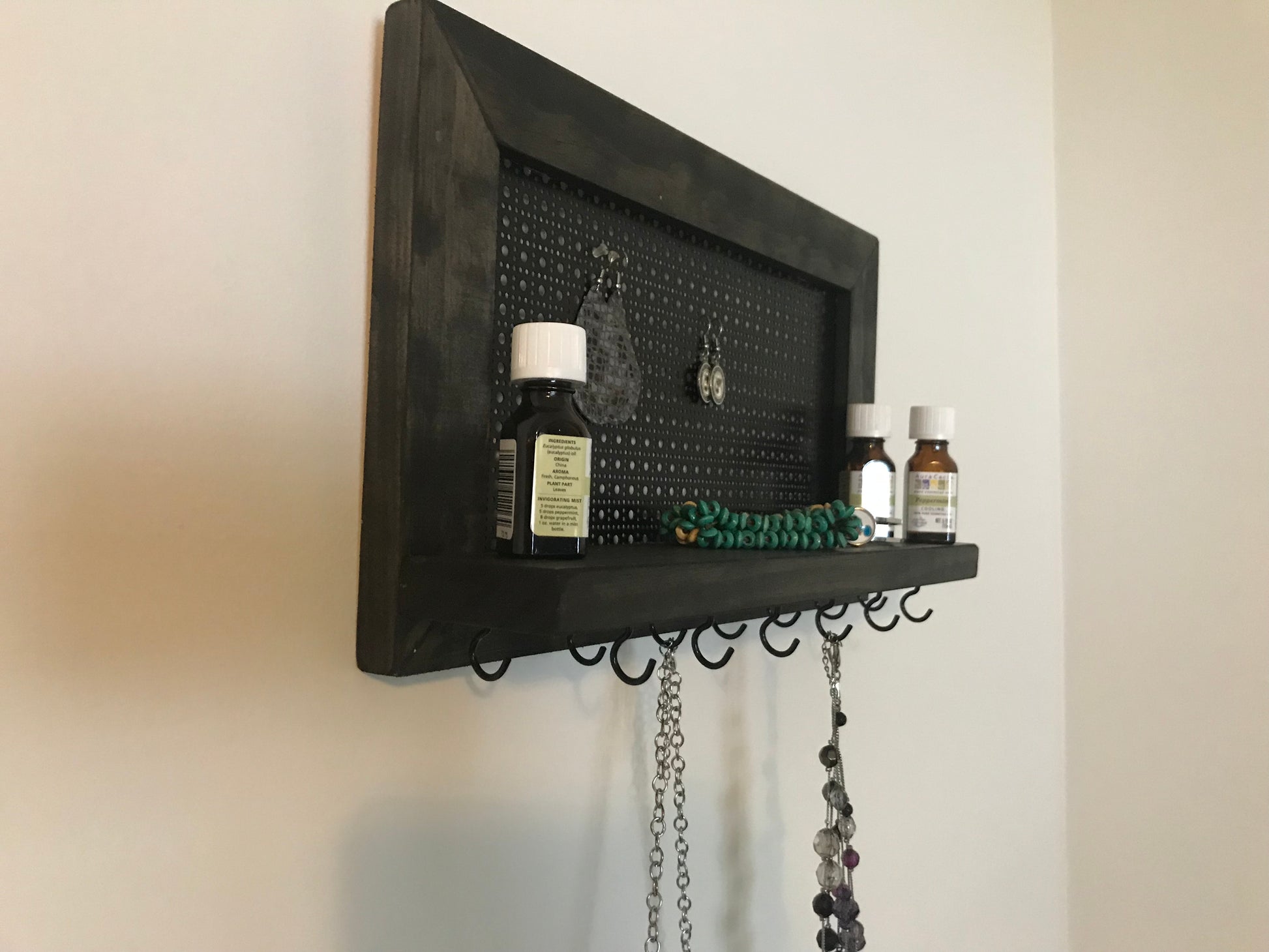 Wall hanging jewelry display. Earring Display. Hanging Necklace Display. Bracelet Shelf Display.